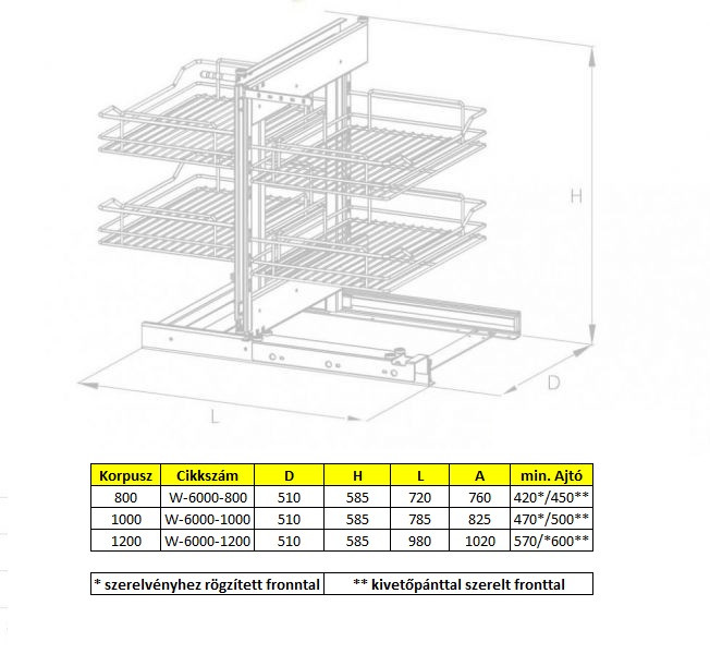 3. Sarokszekrénybe szerelhető fémrácsok